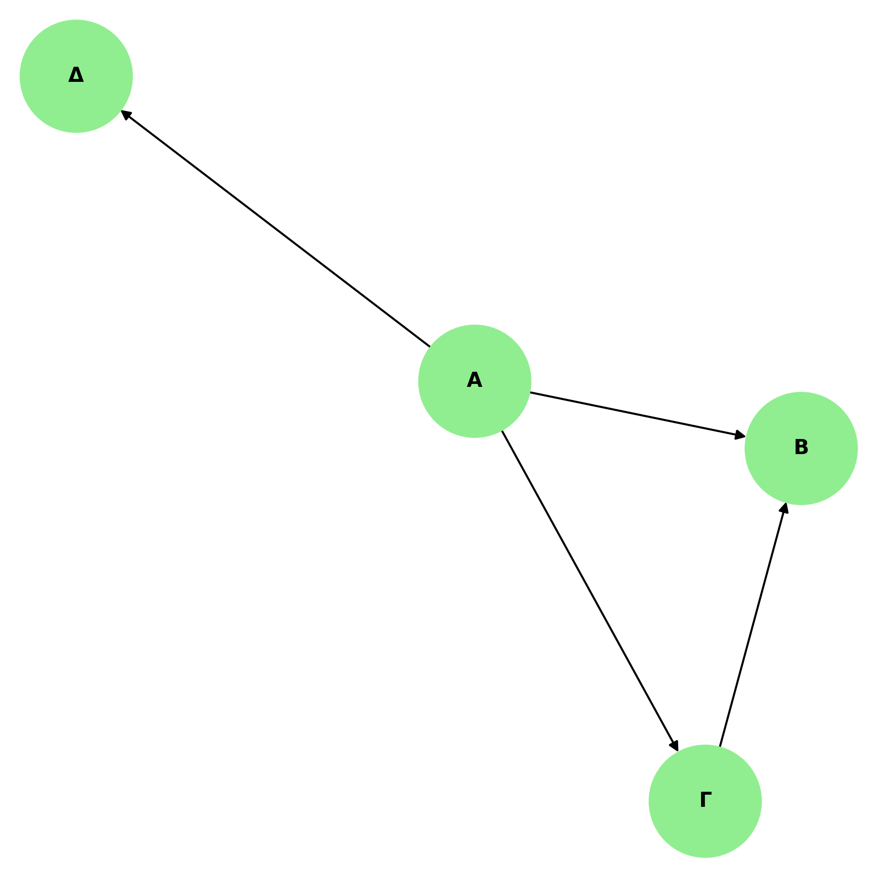 Στον παραπάνω γράφο, το άρθρο Α είναι κόμβος που συνδέεται με τρεις άλλους κόμβους (Β, Γ, Δ). Αν ο Γ παραπέμπει ξανά στον Β, τότε σχηματίζεται ένας κυκλικός ή αλληλοεξαρτώμενος δρόμος. Όσο πιο πολλές τέτοιες παραπομπές υπάρχουν, τόσο πιο πυκνό και πολύπλοκο γίνεται το δίκτυο.